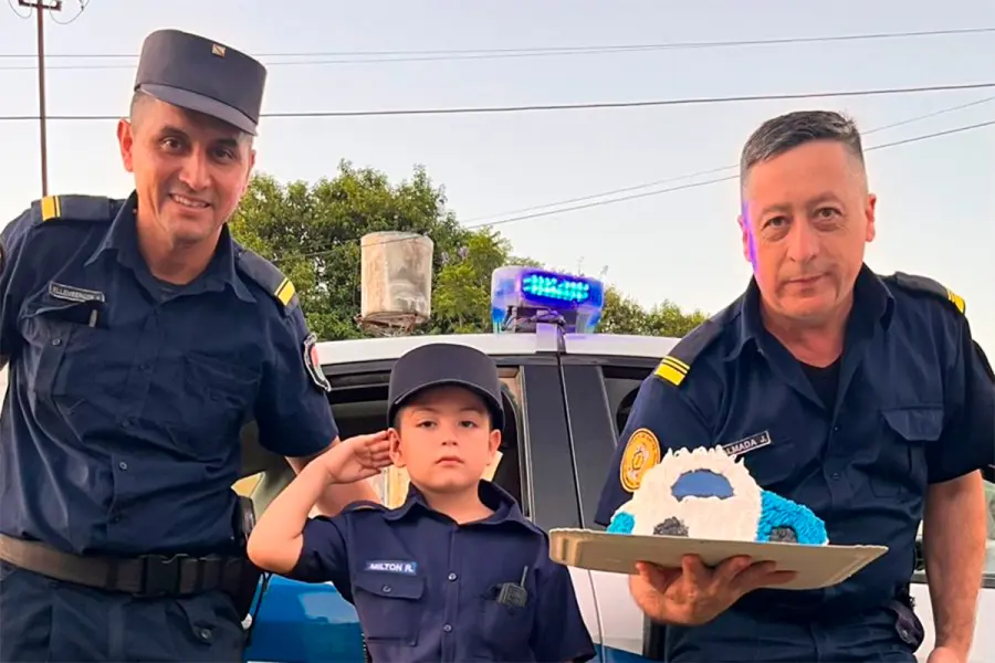Milton celebró sus 6 años y logró cumplir uno de sus mayores sueños: ser Mini Policía por un día. La iniciativa fue posible gracias al compromiso y la solidaridad de José Almada y Alberto Ellemberger, quienes le llevaron una torta, supo Elonce.