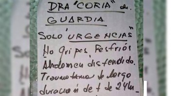 Un curioso cartel es un recetario firmado por la doctora Graciela Coria a cargo de la guardia del Hospital Jorge Ahuad de 25 de Mayo, en La Pampa.