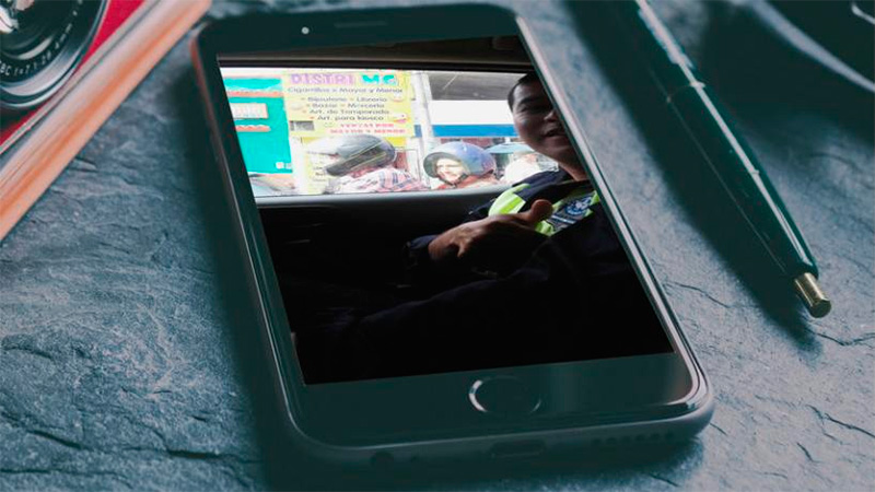 La imagen capturada cómo selfie desde adentro de un auto por el policía en la avenida San Martín de Banda del Río Salí, de Tucumán, se viralizó a través de las redes. En ella se puede ver al autor con una sonrisa mostrando de fondo a la señora con su casco.