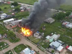 ⚠️Un grupo de vecinos prendió fuego la vivienda del presunto abusador de la Escuela Provincial Nº21, que sería un estudiante de la misma institución.