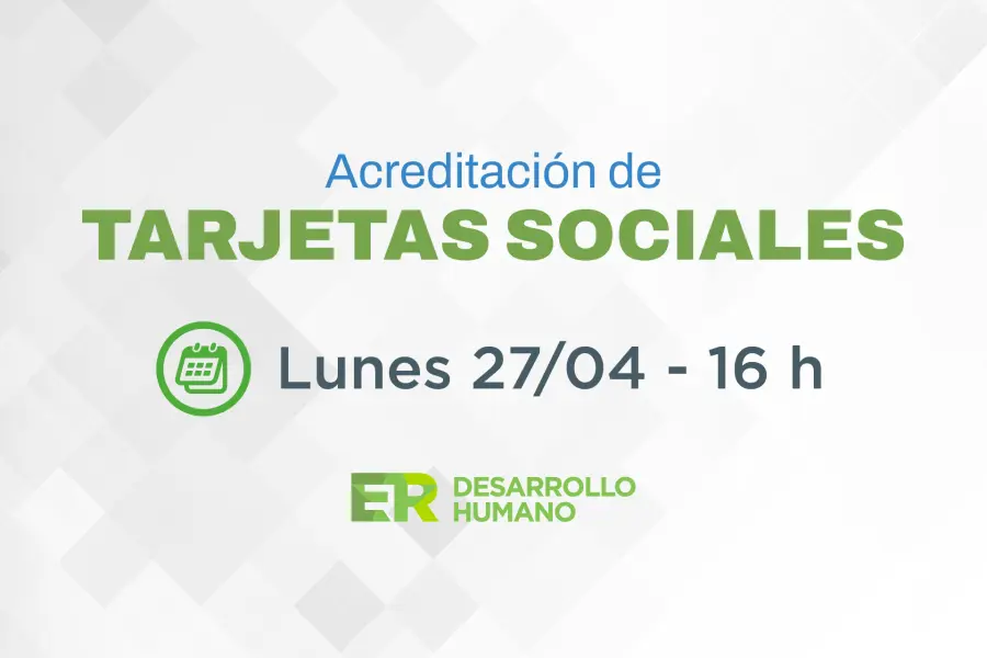 Los fondos correspondientes a las tarjetas sociales de Entre Ríos estarán disponibles desde este lunes 27 de abril a partir de las 16, según informó el Ministerio de Desarrollo Humano de la provincia a través de la Secretaría de Gestión Social.