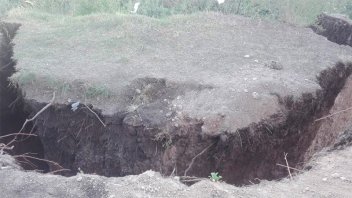 De acuerdo a lo que explicó el Bombero, con el aporte de los informes técnicos que le fueron suministrados, se está produciendo "un desnivel en la tierra, no agrietándose, sino, cediendo hacia el lado del río".