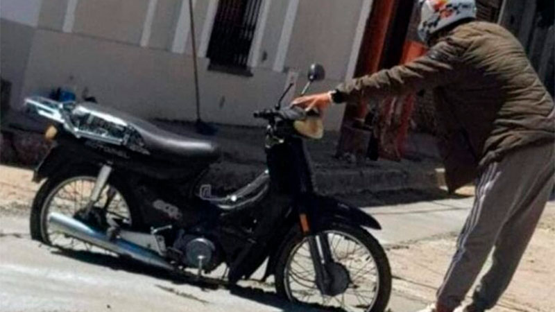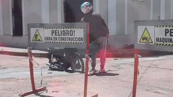 El suceso tuvo lugar en Posadas y Ameghino. Pese a las advertencias de los obreros, un hombre circuló por una parte de una traza que estaba bloqueada y terminó con su moto hundida en el cemento. Tras el episodio, los obreros trataron de auxiliar al conductor del rodado, a quien se le hizo difícil salir de esa situación.