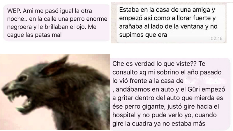 "En Ruta 2, cerca de la curva de la circunvalación, venía pasando en auto y de pronto vi algo parecido a un perro enorme y negro, pero no era perro porque era muy grande y deforme. Los pies eran deformes también, no se movía, solo me miraba, la cara era similar a un ciervo". Así describió un lector su experiencia al mencionado medio.