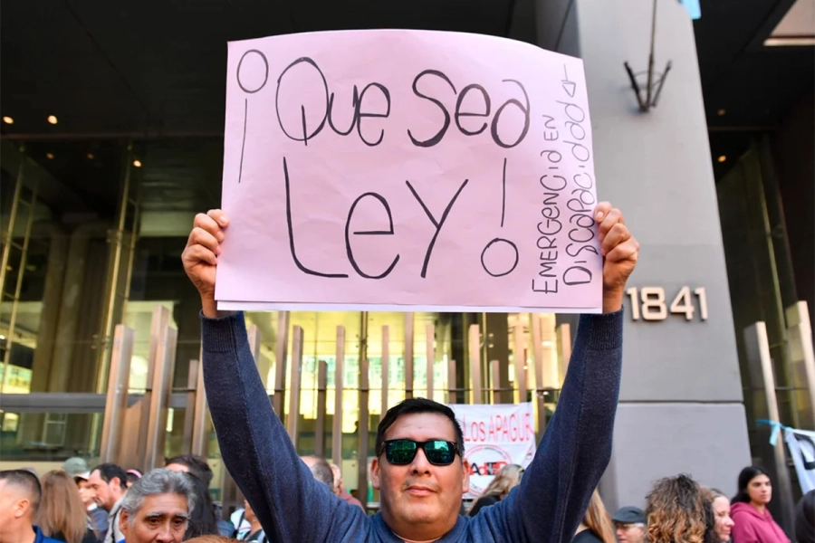 Mientras se desarrollaba la reunión de comisión, familiares, personas con discapacidad y organizaciones sociales marcharon alrededor del Congreso en apoyo a la ley y en reclamo de medidas urgentes para el sector.
