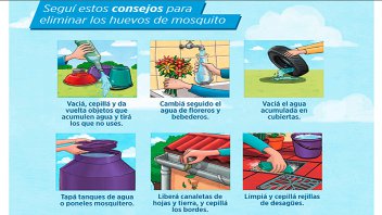 El Ministerio sugiere, además, que en esos lugares la gente no se exponga en al aire libre durante las primeras horas de la mañana y al atardecer, use mangas y pantalones largos, utilice espirales o tabletas repelentes, proteja cunas y cochecitos de bebés con mosquiteros tipo tul que permitan una correcta ventilación y aplique repelente sobre la piel expuesta cada 3 horas.