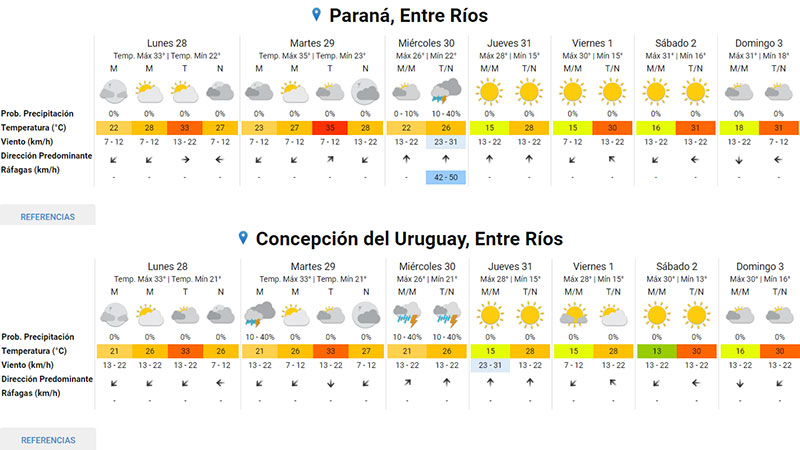 En tanto, para el viernes 1 de enero se prevé una jornada similar marcas térmicas que irán en ascenso y llegarían a 30 grados en Paraná.