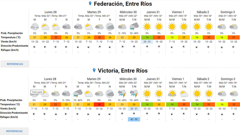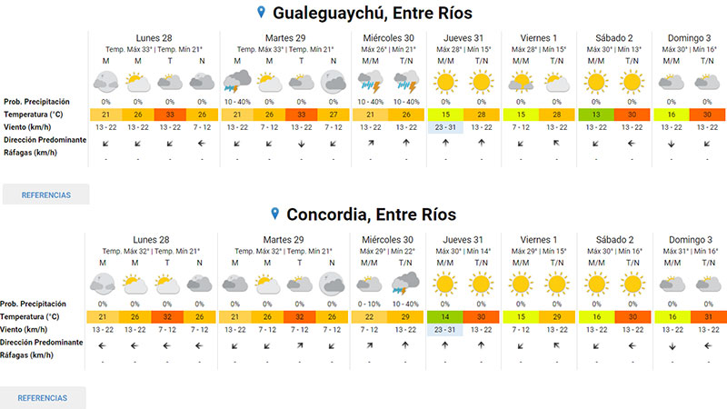 Por su parte, el miércoles se prevén algunas tormentas, lo que traería aparejado el cambio de tiempo, dado que para el 30 de diciembre se pronostica una máxima de 26 grados.