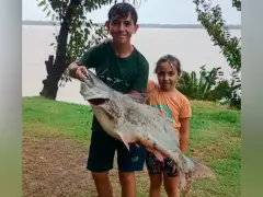 Ayrton y Nayla Kaiser, primos oriundos de Alcaraz, capturaron un patí de gran tamaño en Hernandarias durante el cierre del fin de semana largo. La pieza fue obtenida con caña y desde la costa.