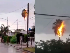Un rayo cayó sobre una palmera. Durante la tormenta eléctrica que acompañó las lluvias de este domingo en Entre Ríos, un rayo impactó en el barrio San Blas de Nogoyá. Según informaron los bomberos voluntarios de la localidad a Elonce, el rayo alcanzó una palmera ubicada en la intersección de las calles San Luis y San Lorenzo, provocando su incendio.