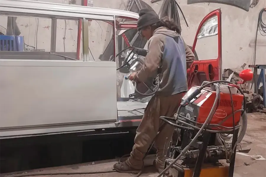 El proceso de transformación fue extenso, metódico y sin pausas. Néstor partió de sus dos unidades de Citroën y se lanzó al desafío de ingeniería casera en febrero. Si bien hacía chapa y pintura, a veces modificaciones, nunca se había enfrentado a un corte y ensamblaje de esta magnitud: “Es la primera vez que me ponía a hacer eso”.