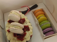 Y la estrella final: los macarons, su especialidad. “Me animé a sumarlos para darle algo distinto. Ya que estamos en Pascuas, que sea completo”, dijo entre risas.