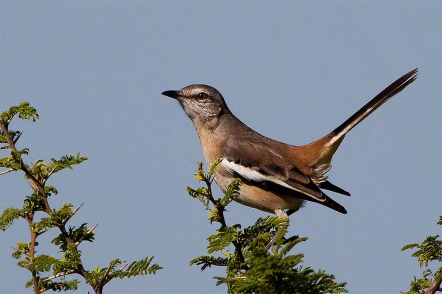 Con unos 27 centímetros de largo, la calandria se mueve con agilidad entre el pasto y los arbustos. Tiene el dorso gris pardo, alas oscuras con bordes blancos y una cola que despliega manchas luminosas al volar. Pero lo que la hace única no es su plumaje, sino su don: puede imitar hasta 200 sonidos distintos, desde cantos de otras aves hasta fragmentos de melodías humanas.
