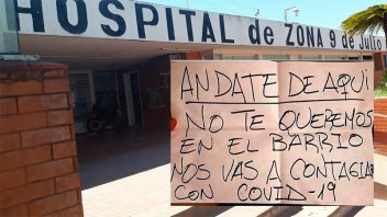 "No te queremos en el barrio, nos vas a contagiar", señala el cartel que vecinos de la localidad de La Paz dejaron en la casa del director del principal hospital del departamento. Autoridades repudiaron el episodio.