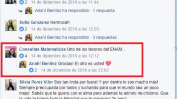 Leonardo Agostino, el docente de 40 años detenido como sospechoso del crimen de la joven tenía una página en la red social llamada "Consultas Matemáticas", a través de la cual exigía por la aparición de la adolescente. El diálogo entre ambos.