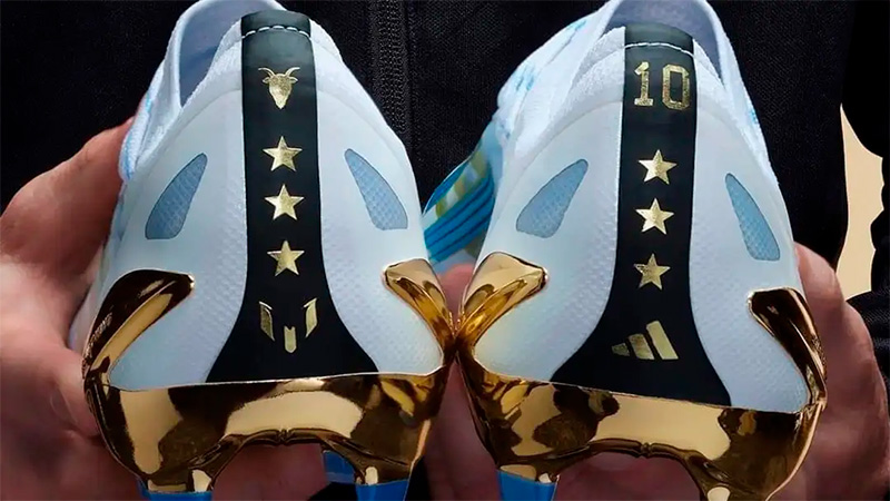 El adjetivo perfecto para las nuevas botas del rosarino es alucinantes. La marca que lo viste publicó las imágenes de Messi junto a sus botines blancos y celestes, en alusión a la bandera argentina, con detalles en dorado por el trofeo mundialista.