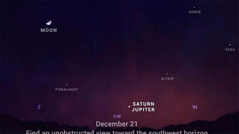 Y agregó que "desde nuestro punto de vista, podremos ver a Júpiter en el carril interior, acercándose a Saturno durante todo el mes y finalmente adelantándolo el 21 de Diciembre."