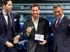 Messi entró al escenario minutos antes de las 18 de Miami, dos horas más en la Argentina. Lo recibió una ovación del público presente, y el alcalde de Miami, Francis Suárez, que lo entrevistó en español durante media hora, y se despidió también con una distinción que le entregaron Suárez eIgnacio González Castro, los organizadores de la cumbre.