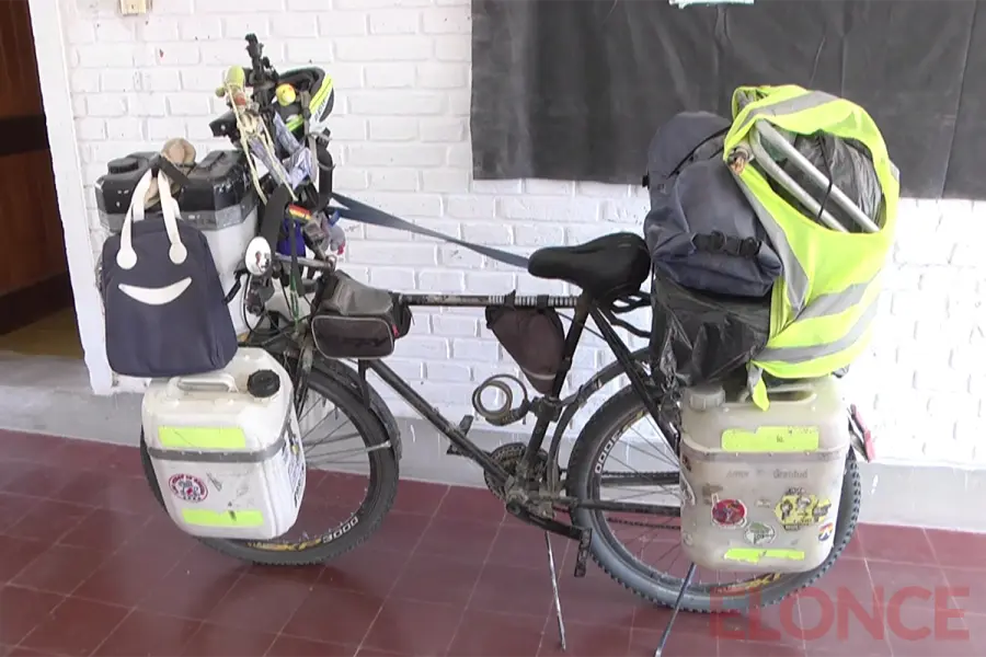 Matías contó que inició el trayecto sin grandes preparativos y que la experiencia previa como mochilero lo ayudó a adaptarse fácilmente al nuevo formato. “No le metí muy mente a la cosa”, dijo sobre el armado de la bicicleta, que convirtió en un vehículo de carga improvisado utilizando bidones en lugar de alforjas.