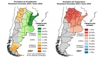 El informe al que tuvo acceso Elonce se indica que "el pronóstico de consenso para noviembre-diciembre-enero", en cuanto a las precipitaciones prevé mayor probabilidad de ocurrencia de lluvias superiores a las normales sobre la región del Litoral (incluida Entre Ríos) y este de Buenos Aires.