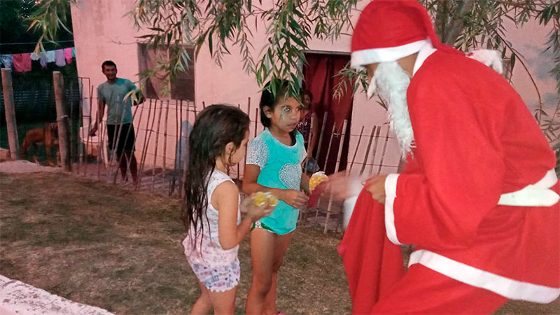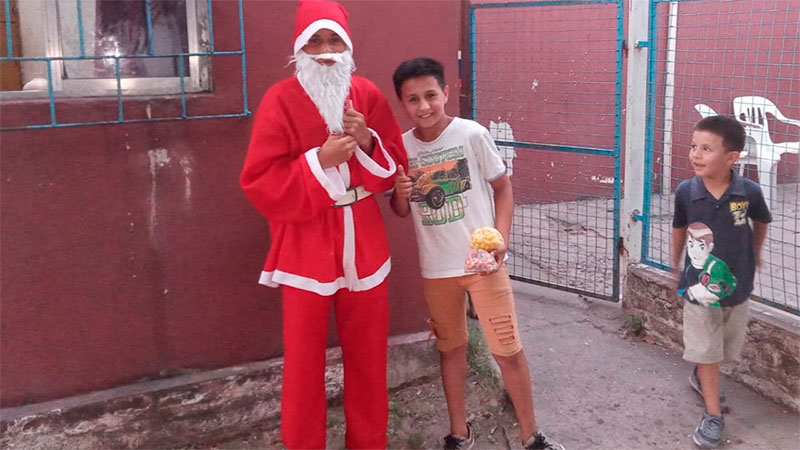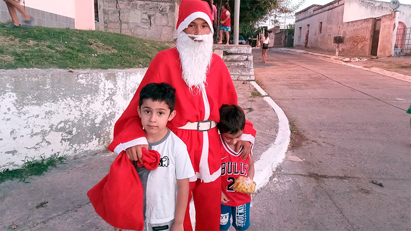 Junto a un vecino, consiguieron algunas golosinas y emprendieron esa aventura en la víspera de Nochebuena, incluso, pidió prestada la bicicleta de su tía para llegar a cada casa del barrio 25 de mayo de Santa Elena.