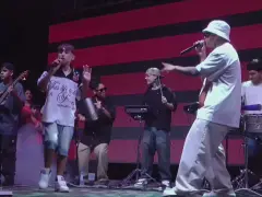 El adolescente había lanzado una campaña en redes sociales para captar la atención del dúo bonaerense. Finalmente, este domingo el artista local consiguió su objetivo, se abrazó con el cantante e interpretó uno de los hits del 2025.