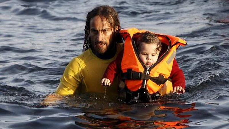 Una imagen del rescatista argentino en Grecia impacta al mundo. Nicolás Migueiz Montán, trabaja en como guardavidas en Barcelona y ayuda a los refugiados que llegan por mar a Grecia. Su historia de humanitarismo y el dramático relato.