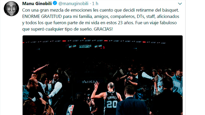 El hermano de la estrella de San Antonio Spurs trazó además un resumen de su enorme trayectoria: "La carrera de Manu desde que dejó el país fue meteórica. No paró de sorprender, de crecer, de ganar cosas que no se le habían dado en la Argentina, ni en su club de barrio ni en la Liga Nacional. Se fue del país y no dejó título por ganar. Ahora obviamente van a empezar los videos, los homenajes, todo con un dejo de melancolía y emoción. Vienen un montón de cosas a partir de lo que ha hecho con la pelota de básquet en la mano".