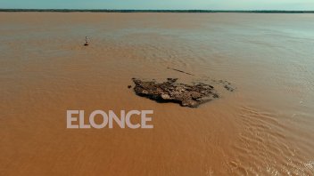 <b>El documento histórico registrado por Elonce TV da cuenta de la magnitud de la bajante del río Paraná y de la importante superficie de la Piedra Mora</b> que asoma sobre el agua del "pariente de mar".