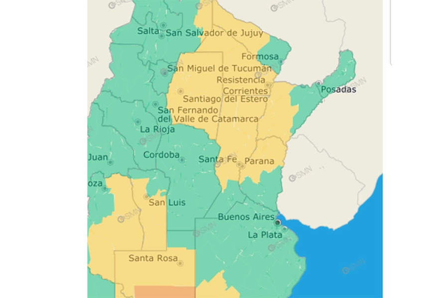 El Servicio Meteorológico Nacional emitió una alerta amarilla para el centro y norte de la provincia de Entre Ríos.