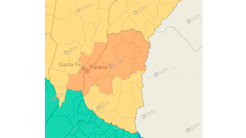 La inestabilidad continuará durante la noche de este jueves, madrugada y mañana de viernes. La alerta naranja incluye a los departamentos Paraná, Diamante, La Paz, Nogoyá, Villaguay, Concordia, Federación, Federal, Feliciano y San Salvador.