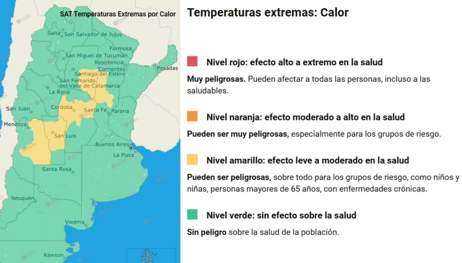 El Servicio Meteorológico Nacional emitió, para este jueves, advertencias por el regreso de las altas temperaturas en varias zonas del país. En sectores de cinco provincias, las marcas podrían ser extremas.