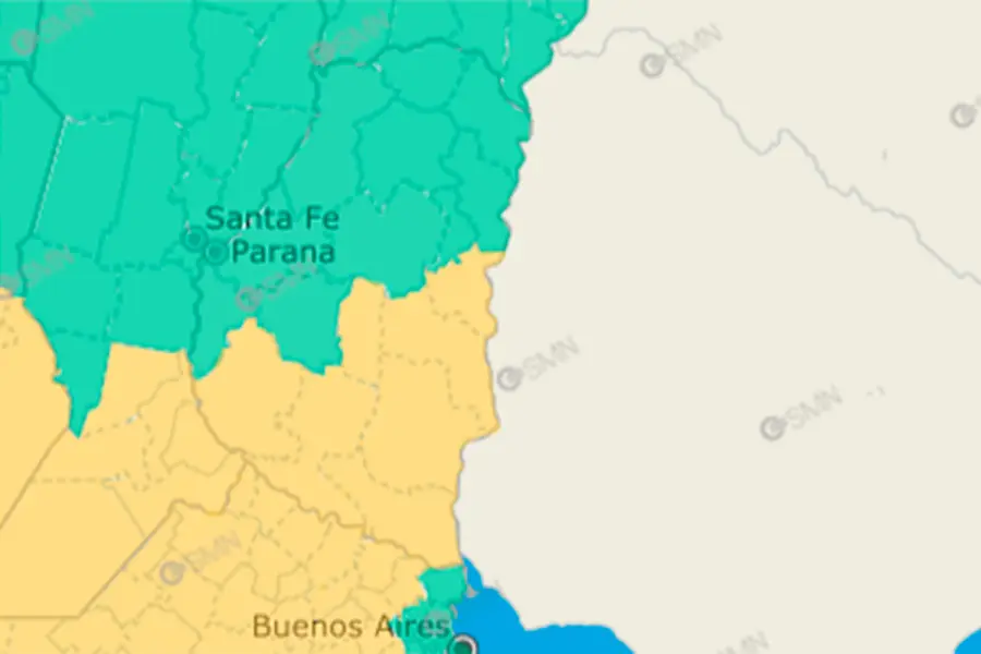 Los departamentos comprendidos en el aviso son Colón, Gualeguaychú, Islas del Ibicuy, Tala, Uruguay, Gualeguay y Victoria. El reporte señaló que la zona “será afectada por lluvias y tormentas de variada intensidad, algunas localmente fuertes”, con acumulados previstos de entre 20 y 40 milímetros, valores que podrían ser superados de manera puntual.