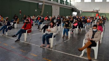 En el video se puede ver que los enfermeros ingresan al salón del polideportivo municipal de Nogoyá y los más de 500 trabajadores de la educación aplauden a los vacunadores en el inicio de la jornada.