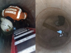 Ante el aviso, una dotación acudió de inmediato al lugar y uno de los socorristas descendió por el tubo utilizando una escalera. Allí logró ubicar al animal, que se encontraba desorientado pero en buen estado general, y lo asistió para ponerlo a salvo.