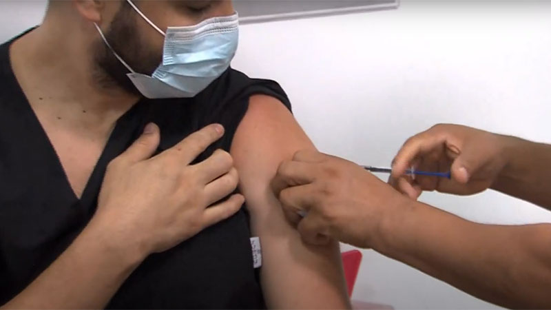 La primera persona en vacunarse fue Francisco Traverso, médico de la unidad de terapia intensiva del Hospital Posadas en el municipio bonaerense de El Palomar, según las imágenes en directo transmitidas por Presidencia. Luego fue el turno de Flavia Loiacono, médica terapista.