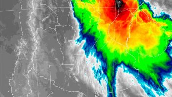 "Sobre el centro y sur del área de cobertura se están desarrollando lluvias y tormentas de variada intensidad, algunas localmente fuertes o severas, acompañadas por abundante caída de agua en cortos períodos, granizo, muy intensas ráfagas e importante actividad eléctrica", señala el parte emitido a las 5.