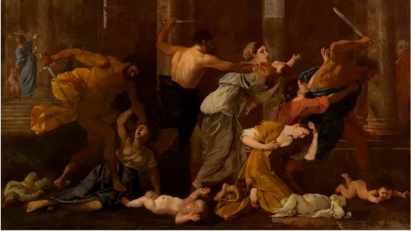 La matanza de los inocentes, de Nicolas Poussin. Los evangelios aseguran que Jesús nació antes de la muerte de Herodes el Grande, quien habría ordenado la matanza de los inocentes, hecho, este último, que los historiadores disputan. Foto: (Getty Images)