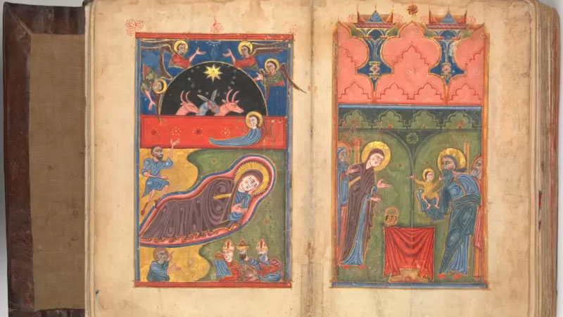 Los cuatro evangelios en armenio, del s. XV. Solo los dos primeros capítulos de los evangelios de Mateo y Lucas mencionan la infancia de Jesús. Foto: (Getty Images)