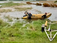 El cuerpo de Bomberos Voluntarios de las localidades bonaerenses de 25 de Mayo y de Bolívar encontraron el cuerpo de Jorge Acuña, quien iba en una camioneta que cayó al Canal Piñeyro. La investigación está a cargo de la Fiscal Julia Sebastián.