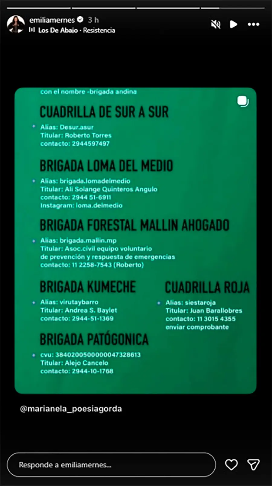 La joven poetisa hizo un llamado a la comunidad: quienes puedan colaborar, háganlo. Cada contribución suma y demuestra que, incluso frente a desastres enormes, la solidaridad y el compromiso de una persona pueden generar un impacto tangible. La colecta para recaudar fondos para colaborar en el combate contra los incendios en la Patagonia sigue abierta y recibe donaciones de vecinos y seguidores de todo el país a través del multiples alias de diferentes organizaciones.