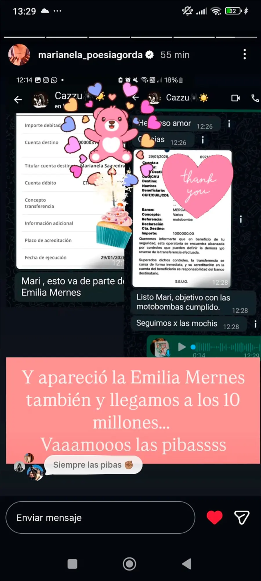 La colecta de Marianela tomó mayor impulso nacional cuando Cazzu, la reconocida cantante de música urbana, se contactó con ella y decidió colaborar personalmente. “Esto se desmadró para bien”, dijo Marianela tras recibir los mensajes de la artista. “Las mujeres del arte llegaron”, agregó, celebrando la unión de artistas detrás de una causa solidaria.