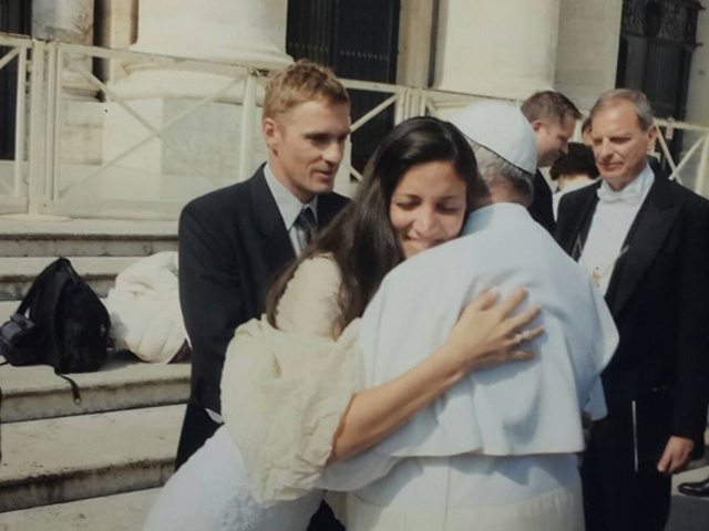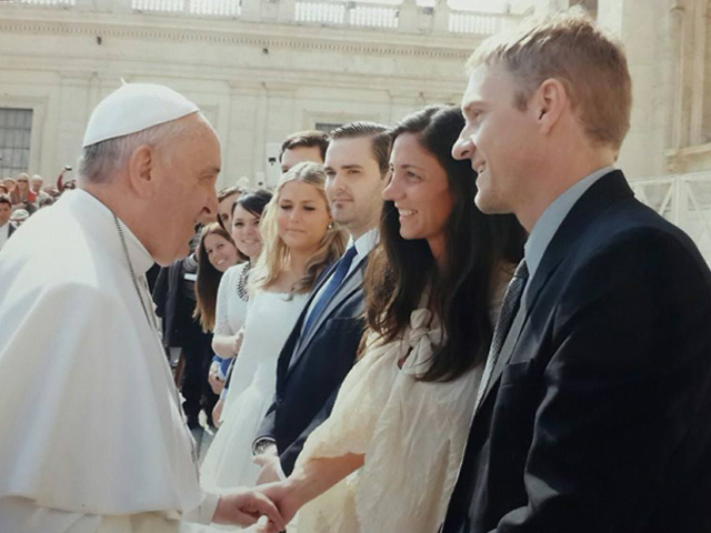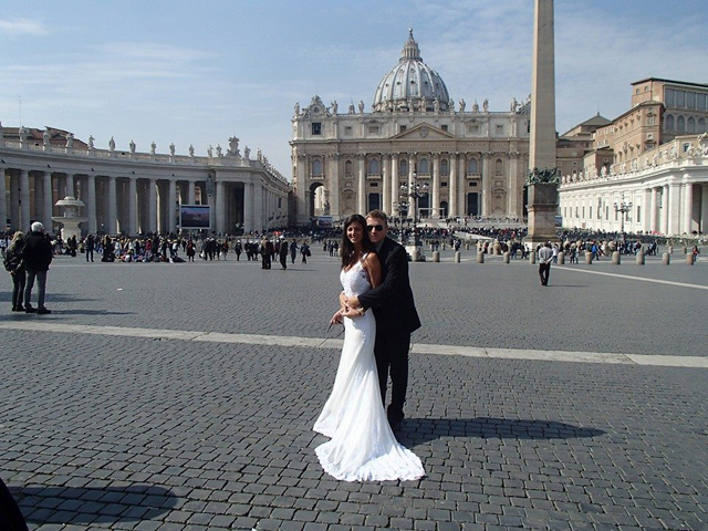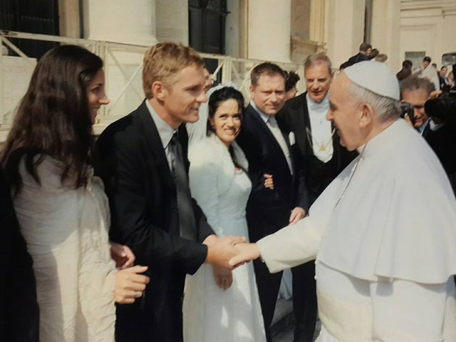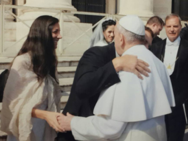 La pareja tenía la confirmación que durante la audiencia papal que se realiza todos los miércoles, se les da un lugar de privilegio a los recién casados; es por eso que llevaron vestimenta de novios para intentarlo. Finalmente, tuvieron el agrado enorme de ser bendecidos por su Santidad.