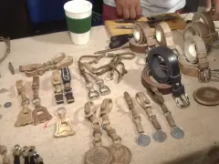 “Lo que es orfebrería lo hace un amigo y yo completo con la soguería de primera”, explicó. En el stand se venden llaveros, accesorios para ponchos.