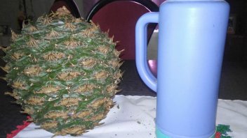 Los moradores de una casa en la zona de Espinillo Norte, se vieron sorprendidos al hallar una piña que había caído desde uno de los pinos de su domicilio. La sorpresa fue cuando la pesaron y tenía 3 kilos.