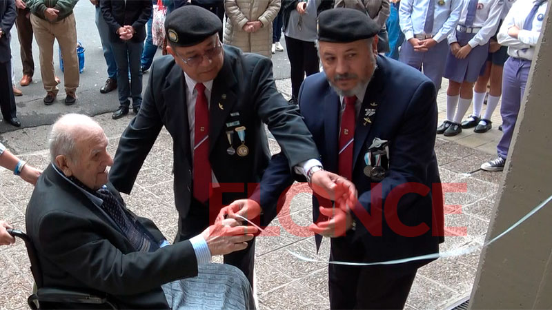 Se realizó un homenaje al brigadier mayor Héctor Luis Destri. Allí, el excombatiente de Malvinas contó a Elonce sobre la guerra y cómo los Hermanos Cuestas sonaron en medio de los bombardeos. “Era un cassette que me envió mi esposa”, dijo