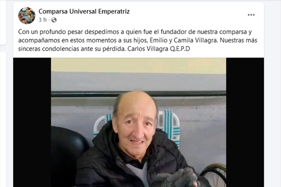 “Con un profundo pesar despedimos a quien fue el fundador de nuestra comparsa y acompañamos en estos momentos a sus hijos, Emilio y Camila Villagra. Nuestras más sinceras condolencias ante su pérdida”, expresó la Comparsa Emperatriz en un mensaje público, homenajeando a quien durante más de cuatro décadas lideró con pasión y creatividad el proyecto colectivo que marcó la historia del carnaval.