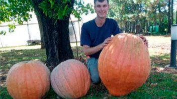 Cristian Hauser, el productor que dio a conocer el primer zapallo gigante dulcero, hoy mostró los tres zapallos que faltaban (Foto).