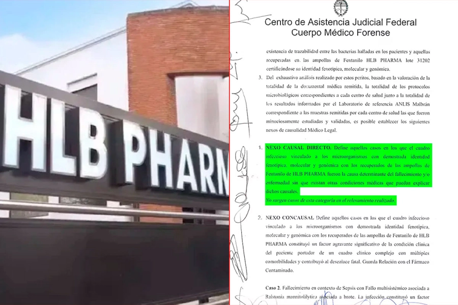 En el mismo, se concluyó que los fallecimientos no se los pudo asociar como “Nexo Causal Directo” de la muerte del paciente. Sí, en cambio, certificaron que en doce historias clínicas la aplicación del fentanilo de HLB Pharma “constituye un factor agravante significativo de la condición clínica del paciente portador de un cuadro clínico complejo con múltiples comorbilidades y contribuyó al desenlace fatal”.