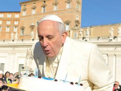 Francisco cumple 78 años y los fieles que acudieron a la audiencia general en la Plaza de San Pedro le organizaron un festejo con varios símbolos argentinos, ya que le ofrecieron mate, torta y hasta un festival de tango y milonga.